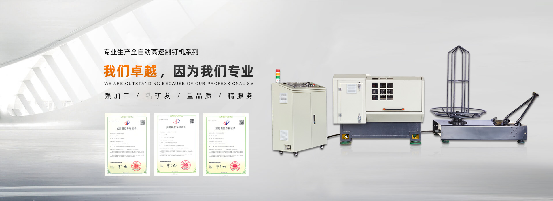 專業生產全自動高速制釘機系列、全自 動拉絲機系列、高速卷釘機
